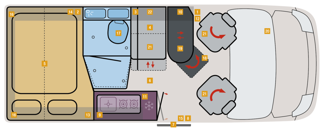 - W połączeniu z dodatkowym łóżkiem pod opcjonalnym łóżkiem podnoszonym w tylnej części pojazdu powstają dwa dodatkowe miejsca do spania.